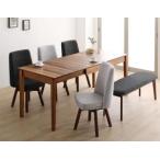 回転イス付き ウォールナット3段階伸縮ダイニングセット 6人 6点セット(テーブル+チェア4脚+ベンチ1脚) W120-180