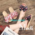 スリッパ イチゴ柄 リボン オープン フラット スリッパ