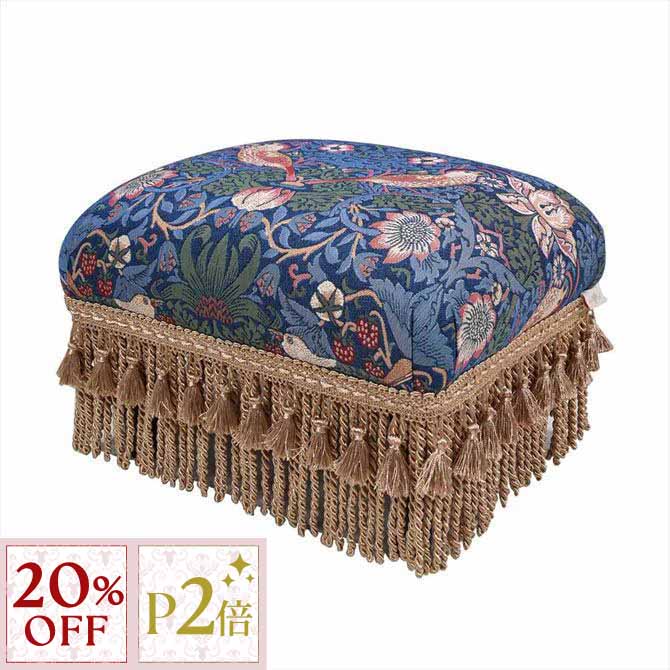 12/3(水)まで【20%OFFクーポン+P2倍】 フットスツール Strawberry Thief(いちご泥棒) Jennifer Taylor ジェニファーテイラー ロココ調 アンティーク調 ヨーロピアン クラシック インテリア 家具 ファブリック