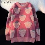 ニットセーター プルオーバー いちご ふわもこ 長袖 ニット セーター 丸首 レディース トップス
