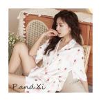 レディース 合成 シルク パジャマ 半袖 ブルー ピンク 白 イチゴ ルームウェア レディース やわらか パジャマ レディース かわいい 前開き 部屋着 レディース ル