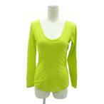 イッセイミヤケ ISSEY MIYAKE カットソー ネオンイエロー 無地 Uネック 長袖 切替 メッシュ /HO47 ■GY60 レディース