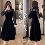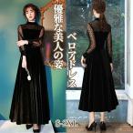イブニングドレス ベロアドレス 透け感 結婚式 同窓会 ベルベット ワンピース ロング ミドル丈 シワにくい パーティードレス オケージョンドレス ハイウエスト