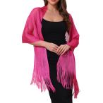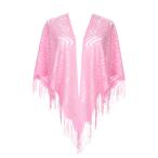 Elerevyo イブニングドレス用のショールとラップ、結婚式やフォーマルパーティー用のレースメッシュフリンジトライアングルスカーフ ピンク 180x