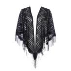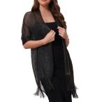Elerevyo イブニングドレス用のショールとラップ、結婚式やフォーマルパーティー用のレースメッシュフリンジトライアングルスカーフ ブラック 180