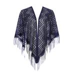 Elerevyo イブニングドレス用のショールとラップ、結婚式やフォーマルパーティー用のレースメッシュフリンジトライアングルスカーフ ネイビーブルー