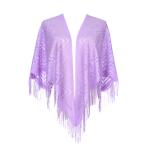 Elerevyo イブニングドレス用のショールとラップ、結婚式やフォーマルパーティー用のレースメッシュフリンジトライアングルスカーフ ライトパープル