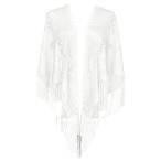 Elerevyo イブニングドレス用のショールとラップ、結婚式やフォーマルパーティー用のレースメッシュフリンジトライアングルスカーフ ホワイト 180