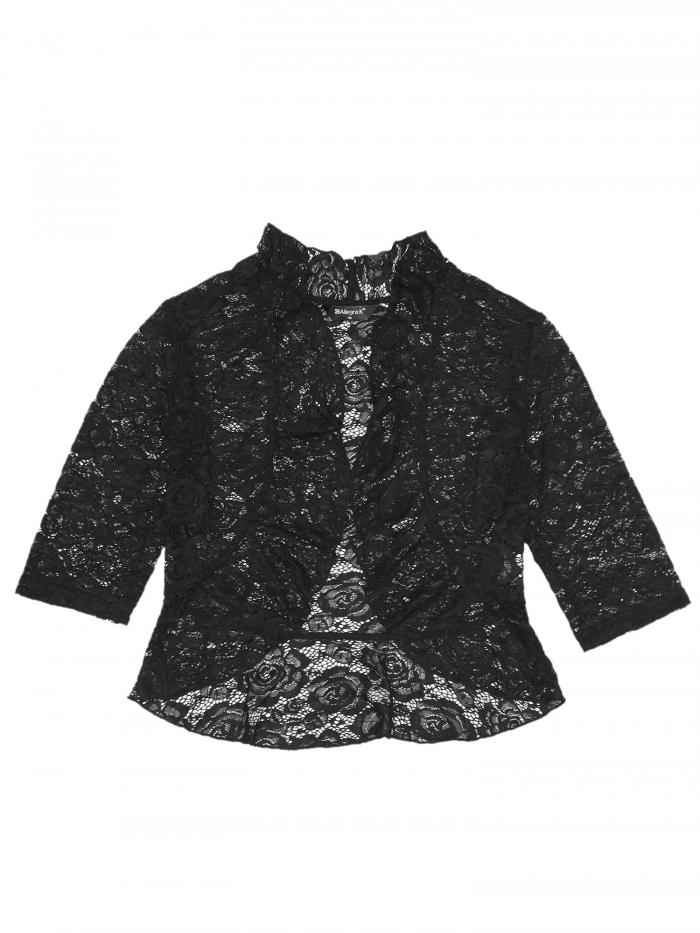 【期間限定10%OFF】Allegra K レディース イブニング ウェディング レース カーディガン 3/4 スリーブ フリル ヘム エレガント シュラッグ ブラック/黒 XL