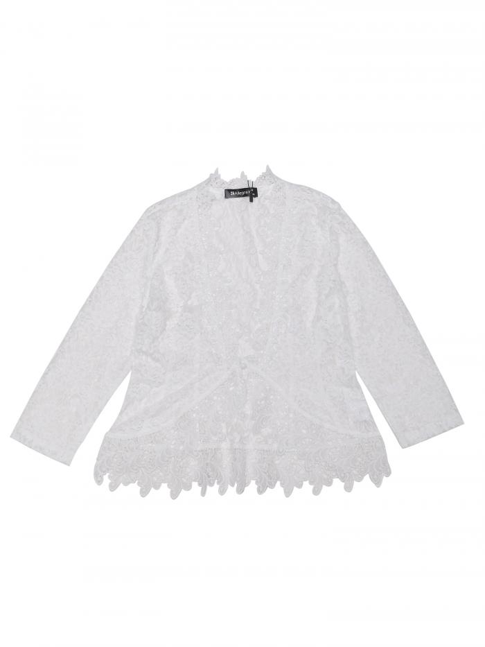 【期間限定10%OFF】Allegra K レディース イブニング ウェディング レース カーディガン 3/4 スリーブ フリル ヘム エレガント シュラッグ ホワイト/白 S