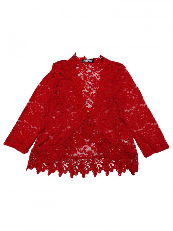 【期間限定10%OFF】Allegra K レディース用 花柄 レース シュラッグ七分袖 フォーマル エレガント ボレロ カーディガン イブニング ダークレッド XL