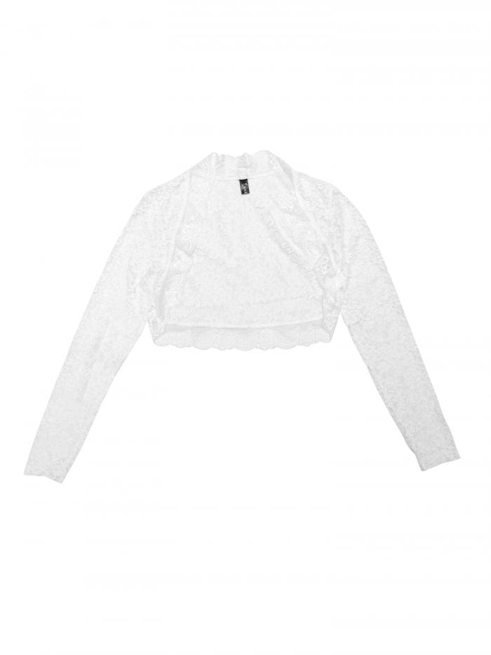 【期間限定10%OFF】Allegra K レディース フローラルレースシュラッグ フリルイブニングドレス 長袖オープンフロント クロップドカーディガン ホワイト/白 M