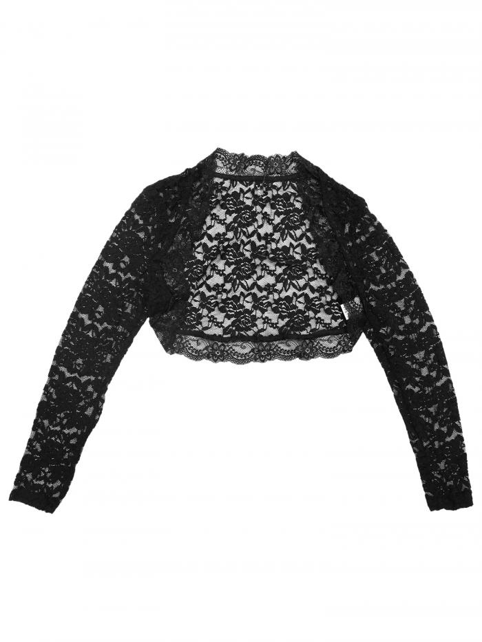 【期間限定10%OFF】Allegra K レディース フローラルレースシュラッグ フリルイブニングドレス 長袖オープンフロント クロップドカーディガン ブラック/黒 M