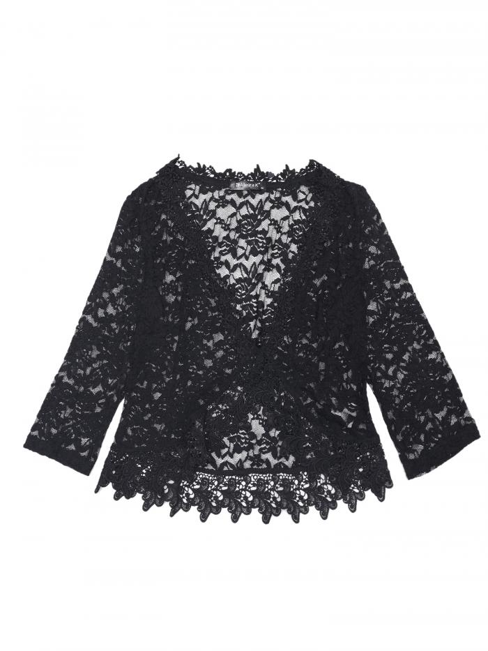 【期間限定10%OFF】Allegra K レディース イブニング ウェディング レース カーディガン 3/4 スリーブ フリル ヘム エレガント シュラッグ ブラック/黒 S