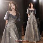 イブニングドレス スパンコール キラキラドレス キレイめ 発表会ドレス パフスリーブ ロングドレス パーティードレス 結婚式ドレス 二次会ドレス ロング