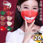 マスク 20枚入り 不織布 カラー クリスマス柄 大人 子供 使い捨て 柄物 可愛い お洒落 4層構造 立体 ファッション ウィルス対策 感染予防