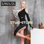 社交ダンス ラテンドレス演出用 練習着 ドレス ワンピース 透け感 長袖 パンツ付き ダンスウェア ステージ衣装 アシンメトリー 発表会