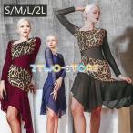 社交ダンス ラテンドレス 演出用 練習着 ドレス ワンピース オフショルダー 肩出し 長袖 ヒョウ柄 パッド付き ダンスウェア 衣装 ステージ