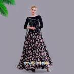 レディースダンス衣装 ステージ衣装 ラテンダンス ワルツ ダンスウエア 花柄 練習着 ワンピース 練習着 競技用大きい裾 社交ダンス モダンダンス