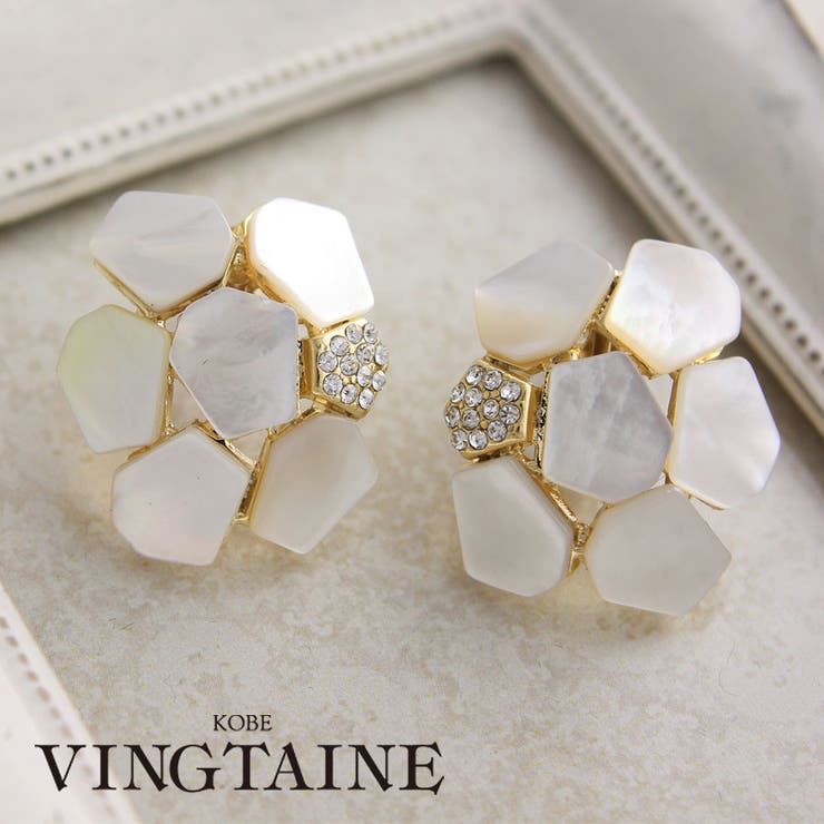 【10%OFFクーポン!12/11(木)1:59まで】VINGTAINE クラシカルシェルピアス/イヤリング/ラインストーン/大ぶり/チタンポスト P1142 アクセサリー