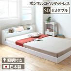 照明付き 宮付き 国産フロアベッド セミダブル (SGマーク国産ボンネルコイルマットレス付き) ホワイト 『illume』イリューム 日本製ベッドフレーム【代引不可】