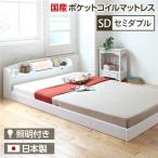 照明付き 宮付き 国産フロアベッド セミダブル (SGマーク国産ポケットコイルマットレス付き) ホワイト 『illume』イリューム 日本製ベッドフレーム 送料無料