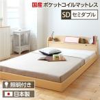 照明付き 宮付き 国産フロアベッド セミダブル (SGマーク国産ポケットコイルマットレス付き) ナチュラル 『illume』イリューム 日本製ベッドフレーム 送料無料