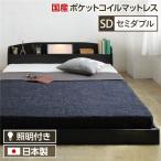 照明付き 宮付き 国産フロアベッド セミダブル (SGマーク国産ポケットコイルマットレス付き) ブラック 『illume』イリューム 日本製ベッドフレーム 送料無料