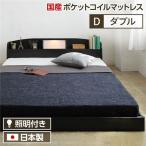 照明付き 宮付き 国産フロアベッド ダブル (SGマーク国産ポケットコイルマットレス付き) ブラック 『illume』イリューム 日本製ベッドフレーム 送料無料