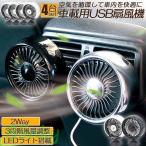 扇風機 車載扇風機 車載USBファン 4個セット 車用 車載 風量3段階 LEDライト 角度調節 2way USB扇風機 ポータブル扇風機 卓上扇風機