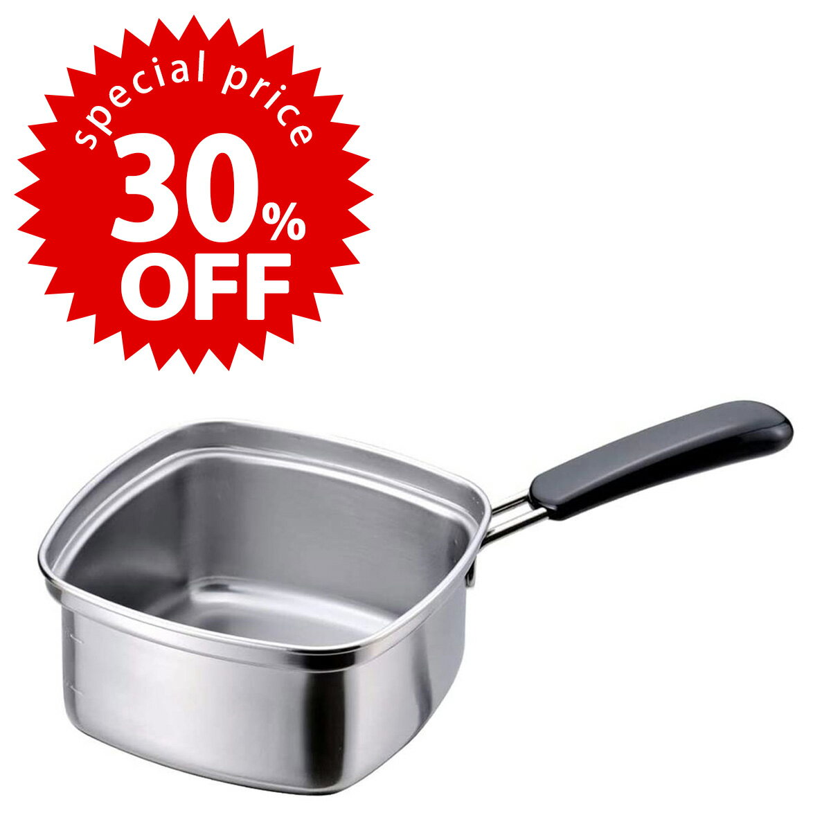 【スーパーセール 期間限定 30%OFF 】 四角い ラーメン鍋 15cm日本製 ステンレス インスタント冷凍うどん ラーメン うどん そば鍋 片手鍋 IH対応 アウトドア受験生 夜食 中華そば 下村企販