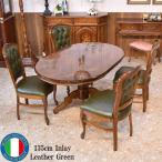 イタリア ダイニングテーブル 5点セット 135cm 楕円形 象嵌 4人用 本皮グリーン アッティカ 木製 ダイニングセット 猫脚 GM-C-1340