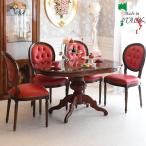 イタリア製 ルネッサンスItalia 象嵌 猫脚135cmテーブル・シックエレガントバージョン・本革ダイニング5点セット(イタリアンレッド)