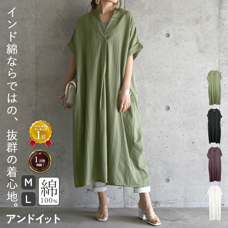 【最大5000円OFFクーポン! 2/10まで】 インド綿 ストライプ ワンピース レディース ナチュラル 夏 とにかく 涼しい 薄手 半袖 ゆったり 綿100% コットン 大人かわいい おしゃれ ロング 5分袖 低身長 前開き 部屋着 二の腕カバー 旅行 海外 ビーチ リゾート 30代 40代 50代