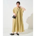 ワンピース 綿麻ミックス 襟プリーツシャツワンピース