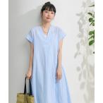 ワンピース mitis ストライプフレンチスリーブタックワンピース