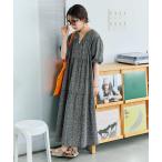ワンピース 「India Fabric」インド綿ピンタックギャザーワンピース/インドデニム/インドコットン