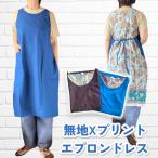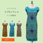 エプロン 綿 エプロンドレス インド綿 無地+プリント シーチング 大きいサイズ レディース ワンピース ミドル丈 ノースリーブ インドサラサ柄 ボタニカル柄
