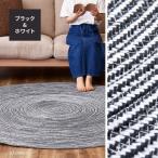 インド綿ラグ ブレイド 直径約180cm ブラック/ホワイト 【北海道・沖縄・離島 送料別】