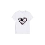 tシャツ 新聞ハートプリントTシャツ ミニ丈 ブラック ホワイト レディース