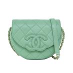 【中古】シャネル マトラッセ チェーン ショルダーバッグ グレインドカーフ キャビアスキン グリーン ゴールド金具 斜め掛け ラウンド レディース 6082737jm-C3