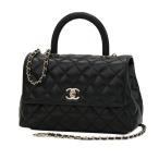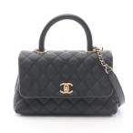 新古品 シャネル マトラッセ キャビアスキン ココハンドル XS トップハンドル フラップ バッグ ハンドバッグ チェーン ショルダーバッグ ブラック A92990