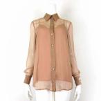 グッチ GUCCI 22SS シャツ ブラウス シルク シフォン シアー 長袖 ロゴ 刺繍 インナーキャミソール付 M 40 ベージュ 国内正規品 美品