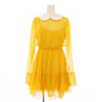 未使用品 グッチ GUCCI ラウンドカラーシフォンドレス フレアワンピース ミニ丈 長袖 丸襟 シアー シースルー シルク 36 黄色