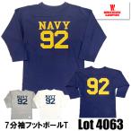 ウエアハウス WAREHOUSE 7分袖 フットボールT Lot 4063 NAVY 92 プリント 両面 Tシャツ 七分 TEE ナンバー 未洗い 綿 ヴィンテージ メンズ アメカジ 新作