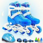\激安挑戦!6名限定10%OFF/インラインスケート 子供 全て光るウィール 子供用 ローラースケート 子ども インラインシューズ サイズ調整可能 安全 プロテクター付き サイズ調整可能 男女兼用 初心者向け キッズ 小学生 中学生 静音 耐久 通気性抜群 安定 誕生日 贈り物