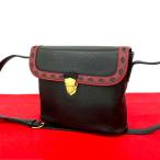 極 美品 YVES SAINT LAURENT イヴサンローラン ヴィンテージ YSL ロゴ 金具 カットアウト レザー ショルダーバッグ ブラック レッド 34888