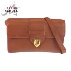 【ポイント2倍】ほぼ未使用 YVES SAINT LAURENT イヴ・サンローラン YSL ロゴ 金具 カットアウト レザー 本革 ショルダーバッグ オレンジブラウン 50343【送料無料】【中古】