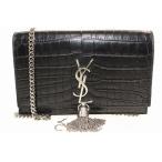 イヴサンローラン YVES SAINT LAURENT ケイト レザー チェーンウォレット タッセルスモール ショルダーバッグ ブラック 型押し 452159 ☆AA