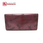 YVES SAINT LAURENT イヴ・サンローラン YSLロゴ 総柄 財布 ロングウォレット 2つ折り がま口 長財布 ワインレッド レディース【中古】